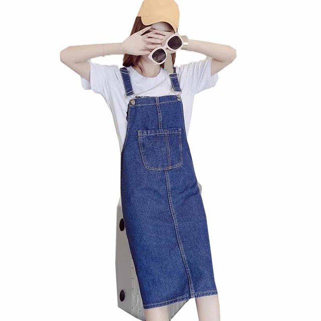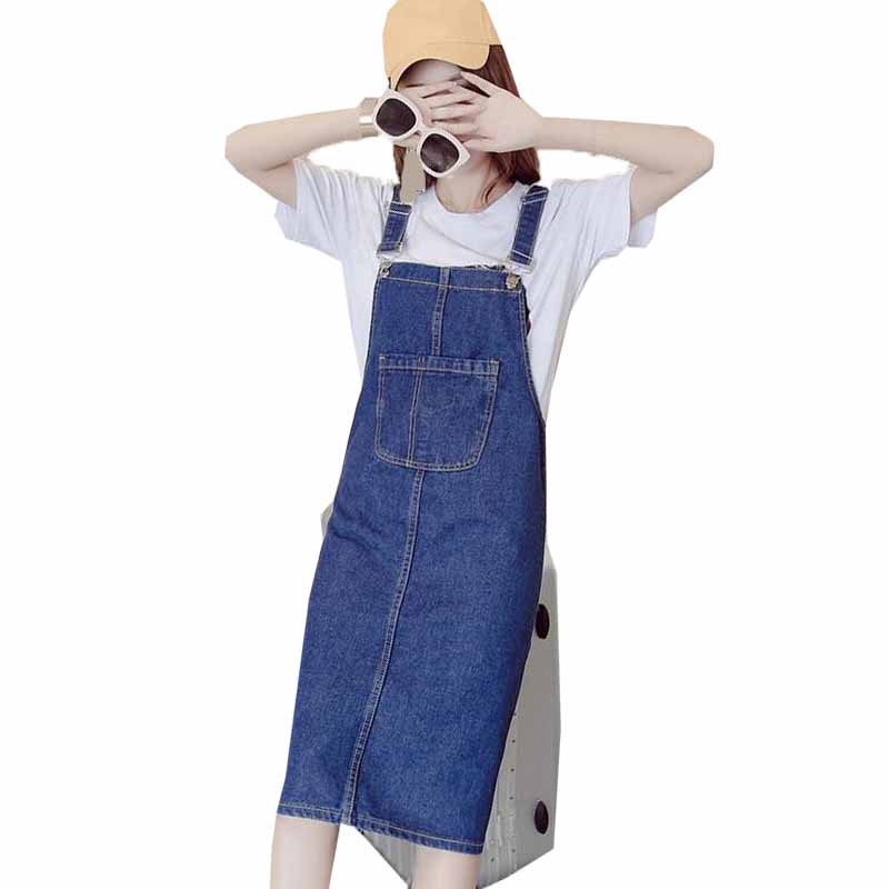 2017 Womens Vintage Spaghetti Straps Loose Split Summer Casual Party Jean Denim Look Strap Dress Straight Long Vestido