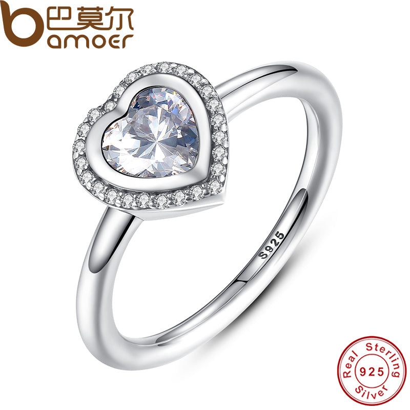 BAMOER 2016 Spring Collection 925 Sterling Silver Sparkling Love Heart Ring Women Jewelry Saint Valentine's Day Gift PA7135