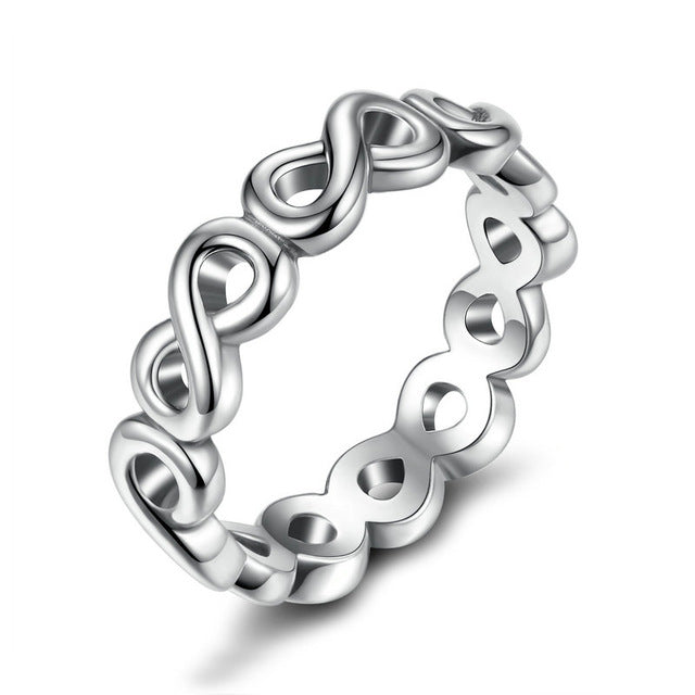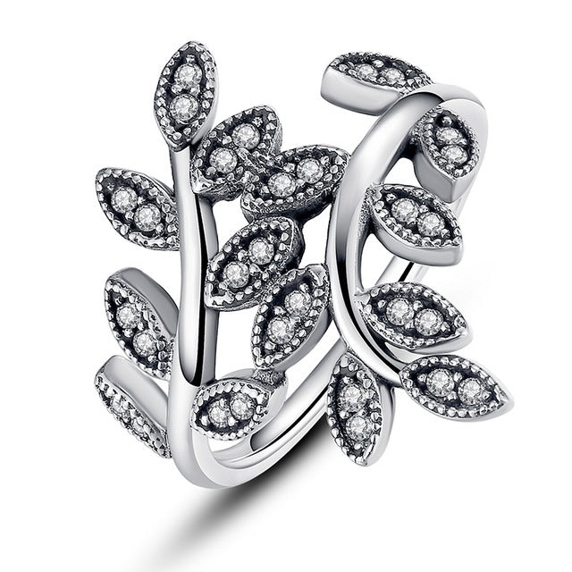 BAMOER 8 STYLE BRAIDED PAVE ,LEAVES My Princess Queen Crown SILVER RING Twist Of Fate Stackable Ring Jewelry for Women Party