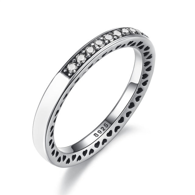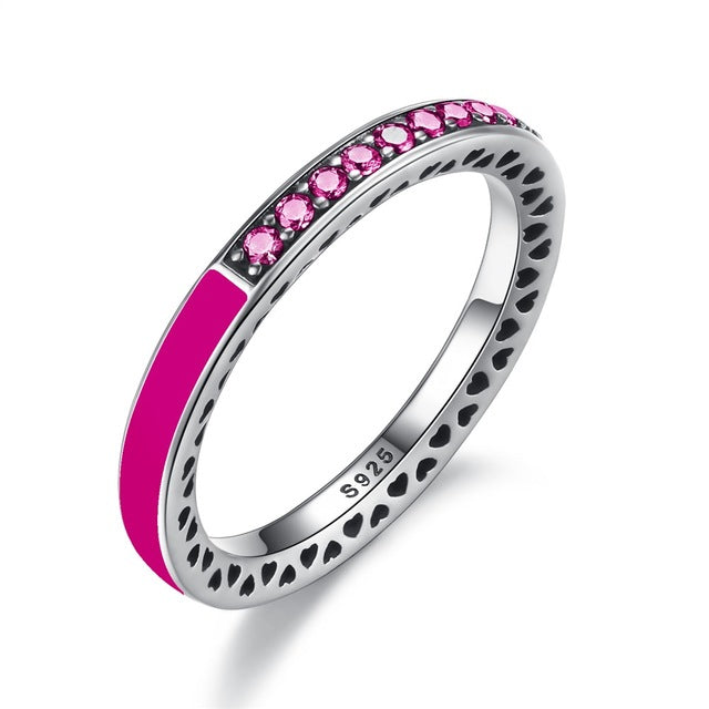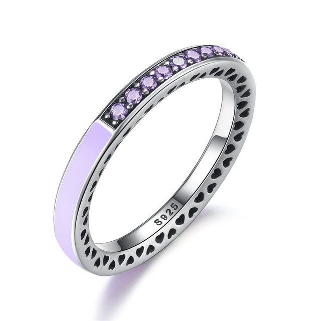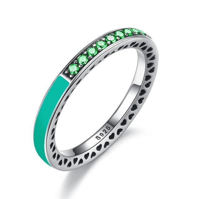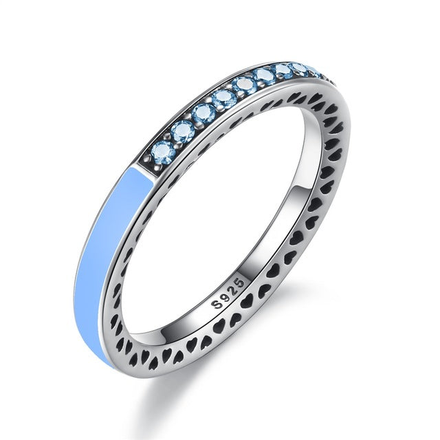BAMOER 925 Sterling Silver Radiant Hearts Air Blue Enamel & Sky Blue Synthetic Spinel Women Ring Silver Jewelry PA7620