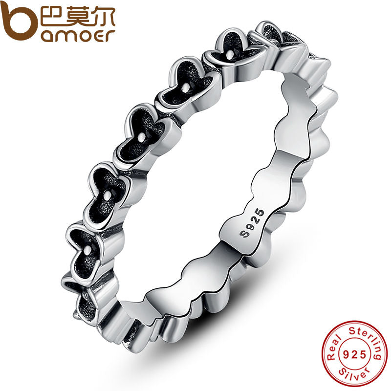 BAMOER New Arrival 925 Sterling Silver Floral Elegance Stackable Ring Authentic Jewelry PA7112