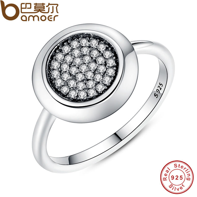 BAMOER Real 925 Sterling Silver Signature Pave Round Ring with Clear Cubic Zirconia Anniversary Jewelry for Women PA7121