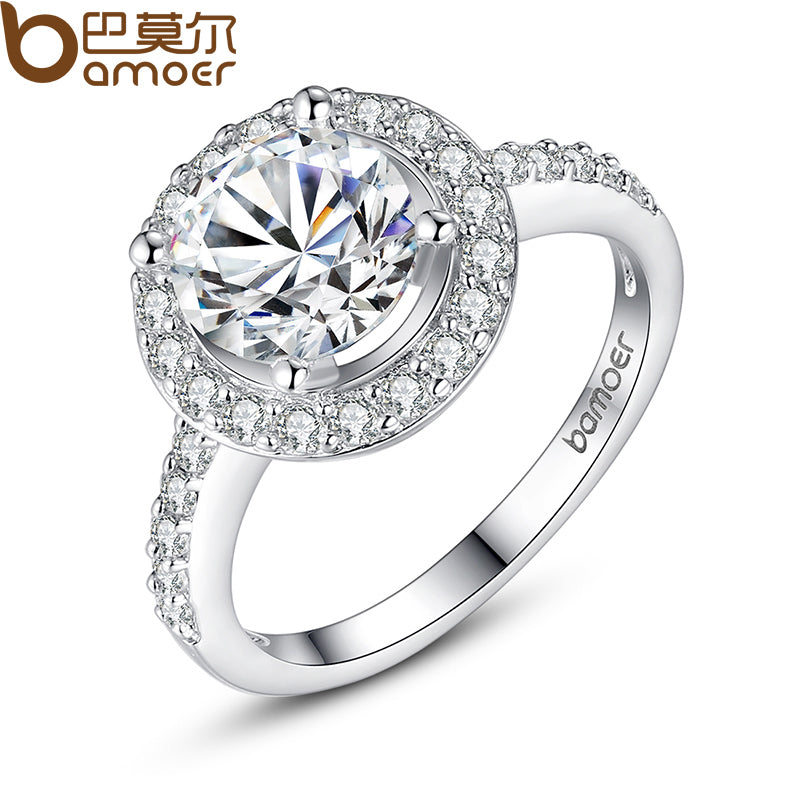 BAMOER White Gold Color Ring With Carat Zircon 1CM Luxury Wedding Ring for Women Wholesale YIR033