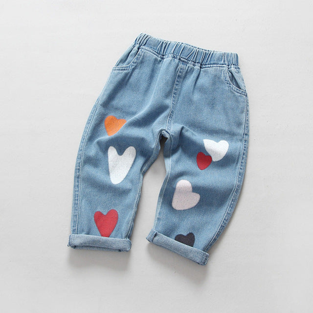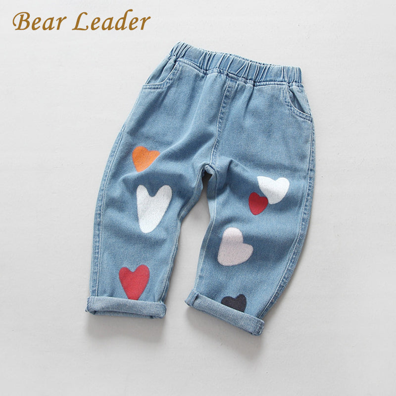 Bear Leader Boys Girls Jeans 2017 Spring Jeans Trousers Cartoon Heart Print Kids Pants Children Clothing Pantalon Fillette 3-7Y