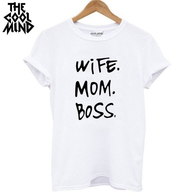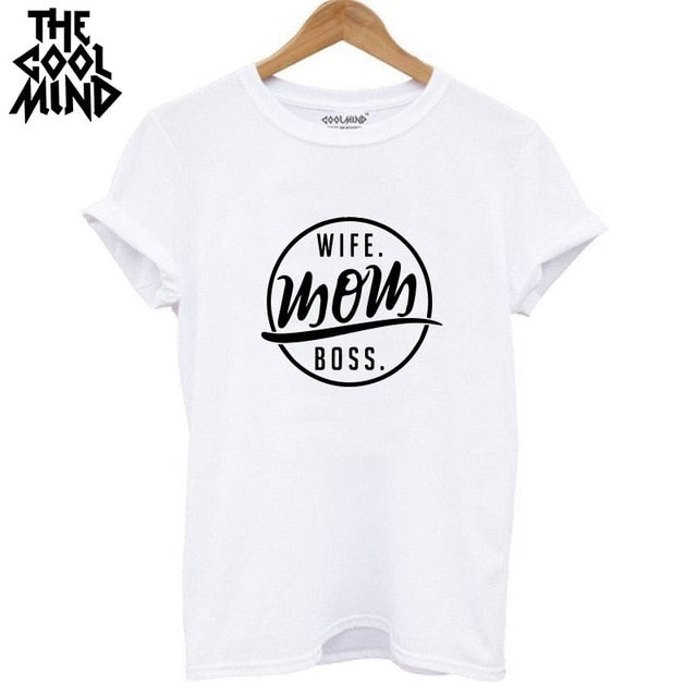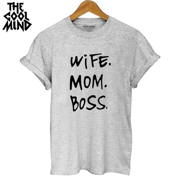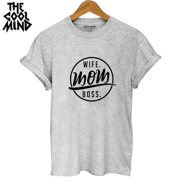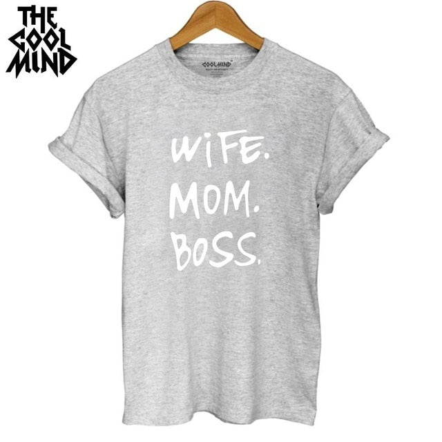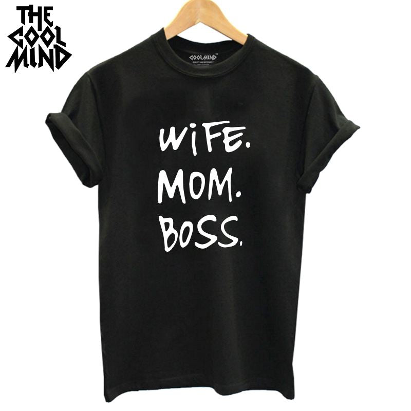 COOLMIND WR0711B high quality 100% cotton wife mom boss print t shirt women casual cool summer t-shirt women short sleeve Tshirt