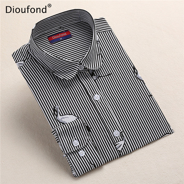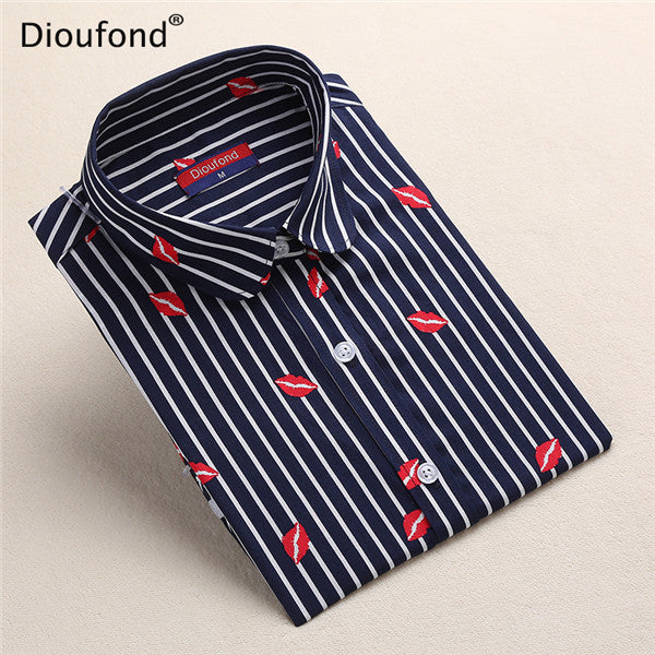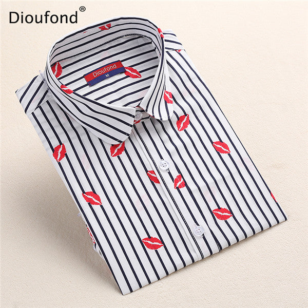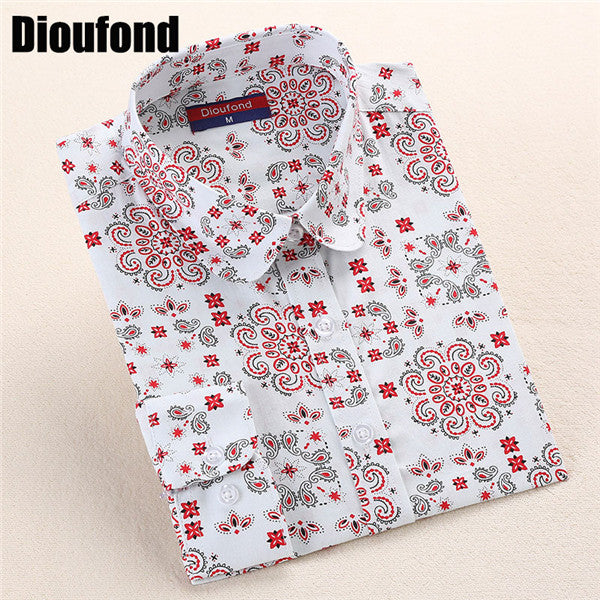 Dioufond Black Flower Print Blouse Women Turn Down Collar Button Down Blouse Shirt Casual Cotton Shirts Plus Size S-5XL 2017