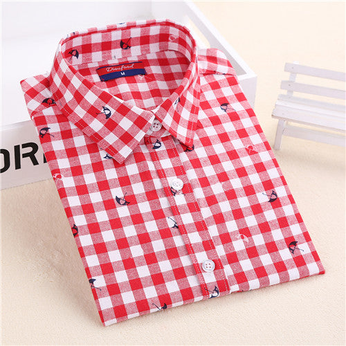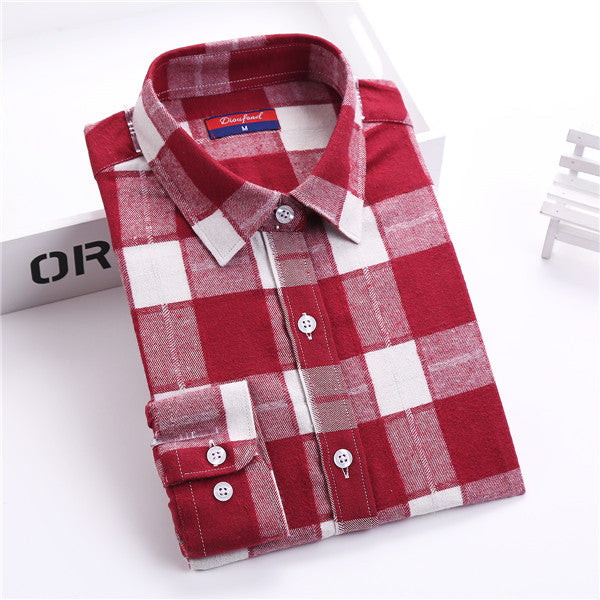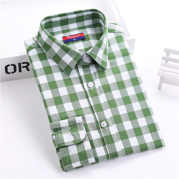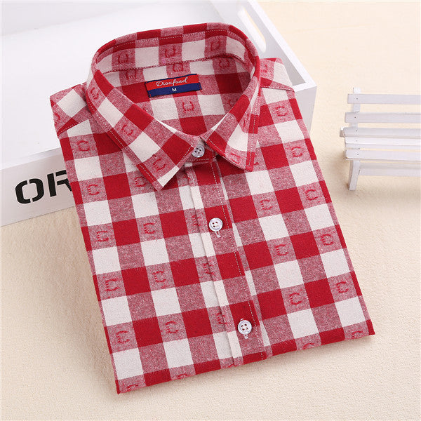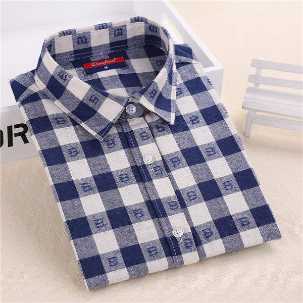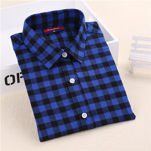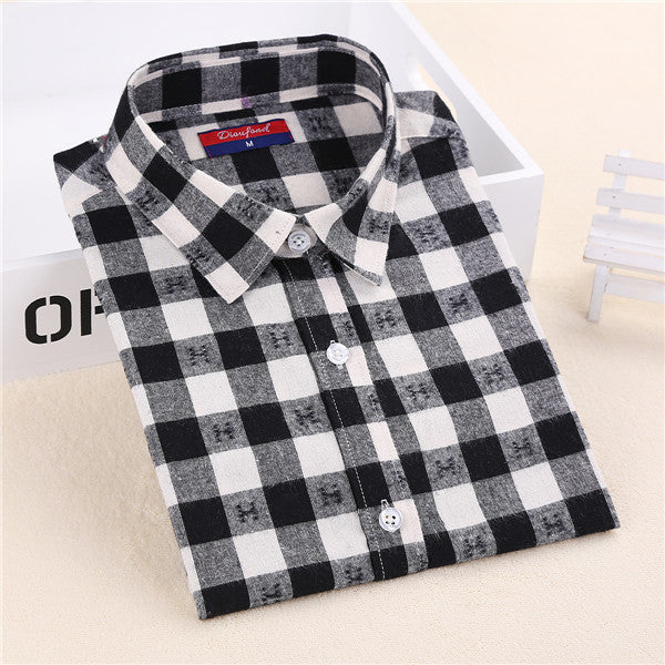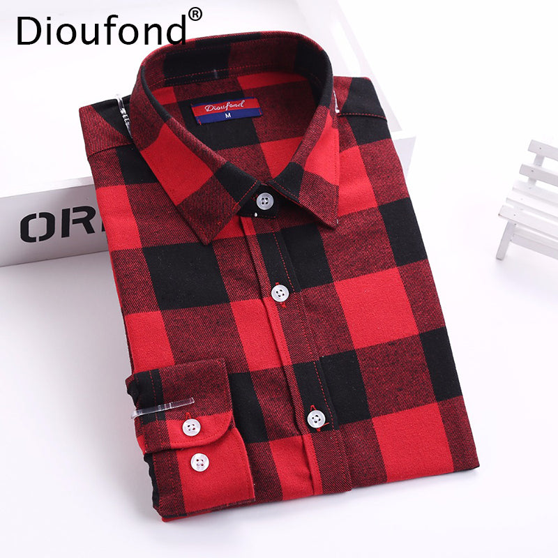 Dioufond Flannel Plaid Shirt Women Shirts Blouses Long Sleeve Plaid Blouse Causal Turn-down Collar Clothes Women Tops Fashion