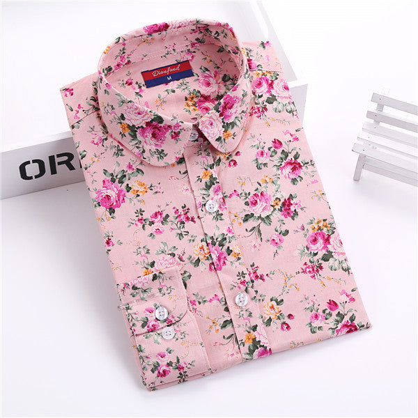 Dioufond Floral Women Blouses Polka Dot Blouse Long Sleeve Shirt Women Cotton Camisas Femininas Blusa Feminina Ladies Tops