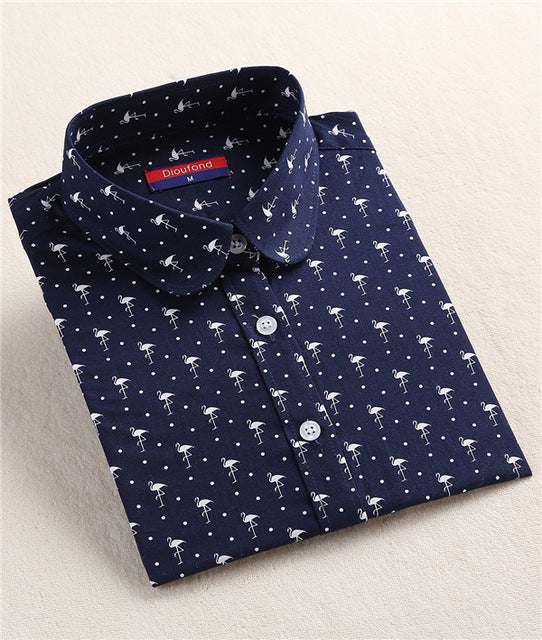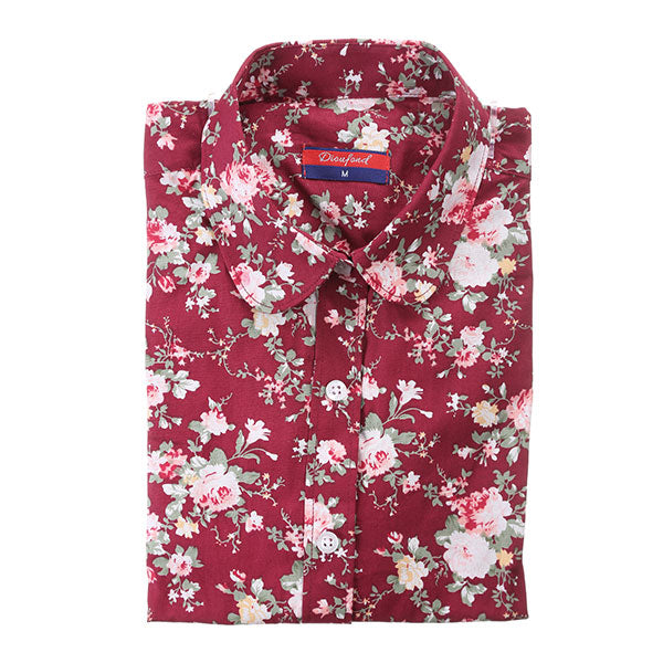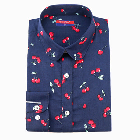 Dioufond New Floral Long Sleeve Vintage Blouse Cherry Turn Down Collar Shirt Blusas Feminino Ladies Blouses Womens Tops Fashion