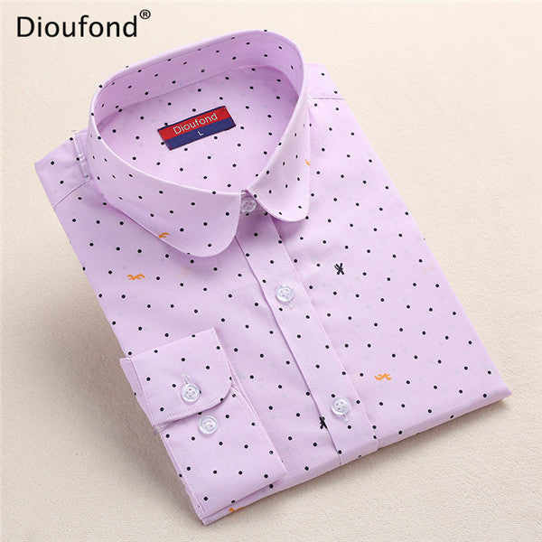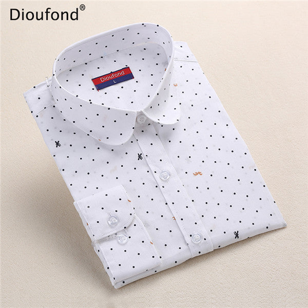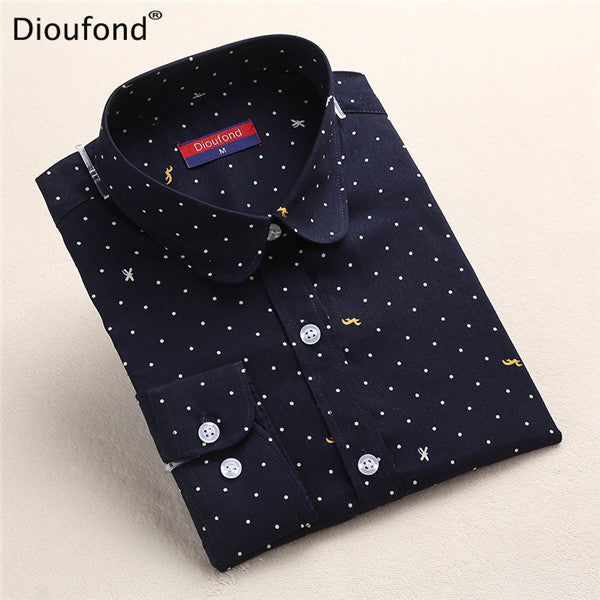 Dioufond Polka Dot Printed Blouse Shirt Women Long Sleeve Cotton Work Wear Blouses White Print Blusa Feminina Navy Top 2017