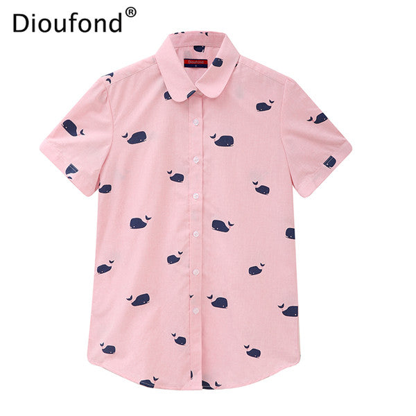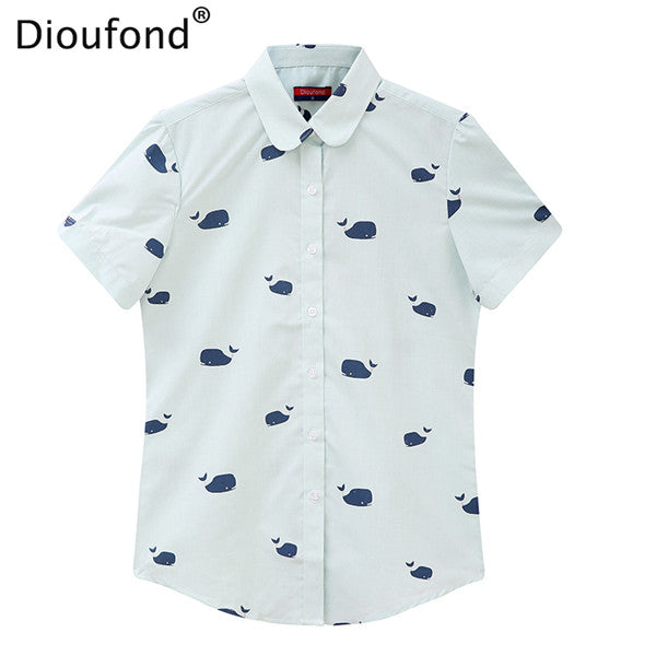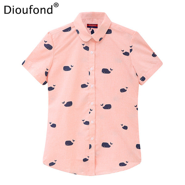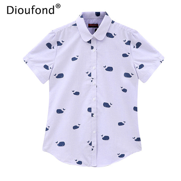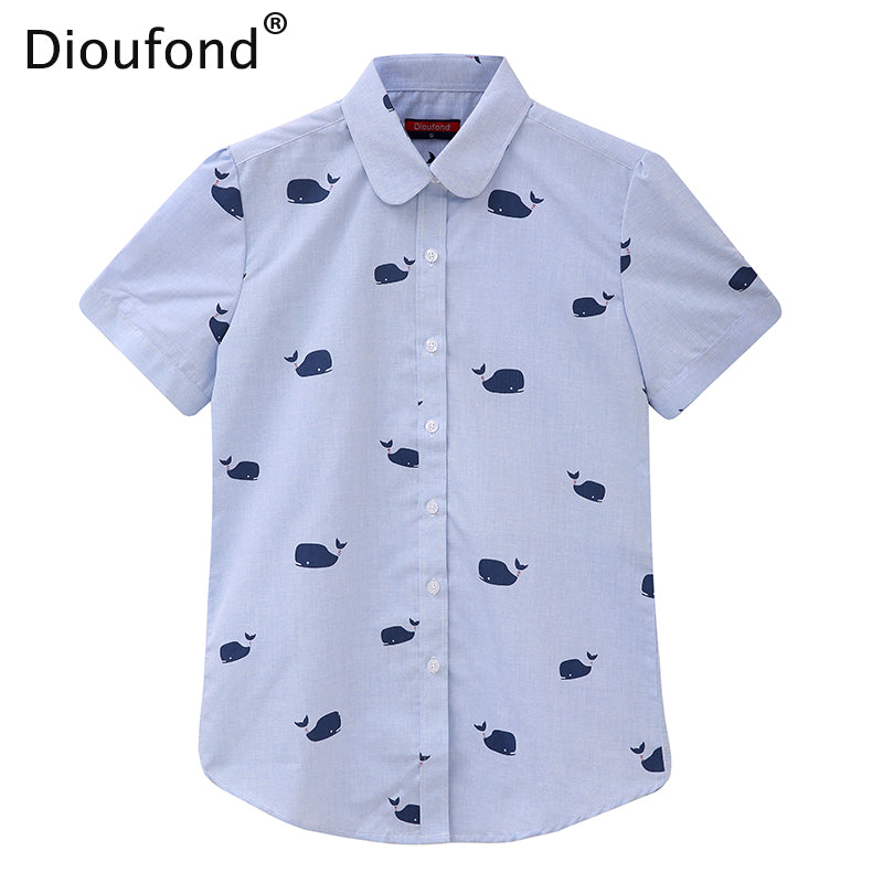 Dioufond Summer Short Sleeve Animal Print Blouses New Turn Down Collar Cotton Casual Women Shirts Plus Size 5XL Tops 2017