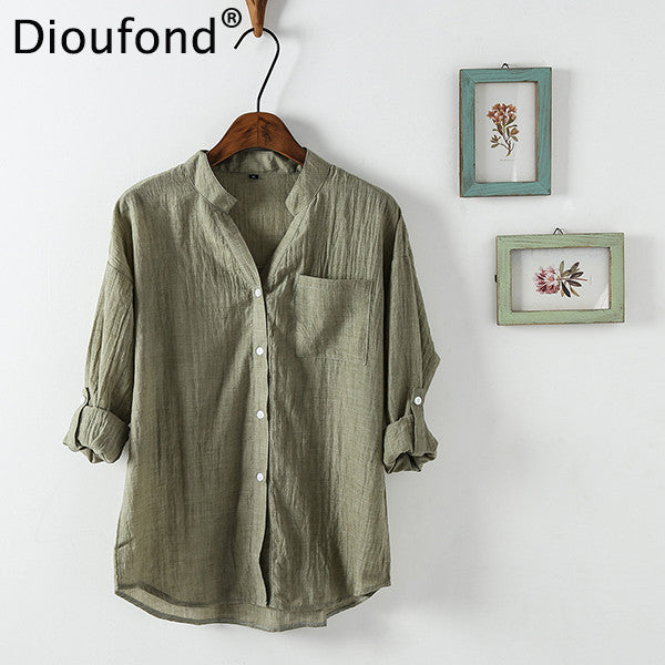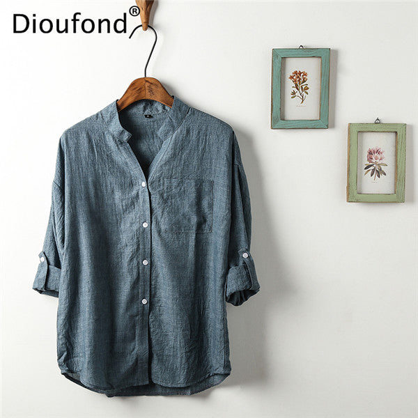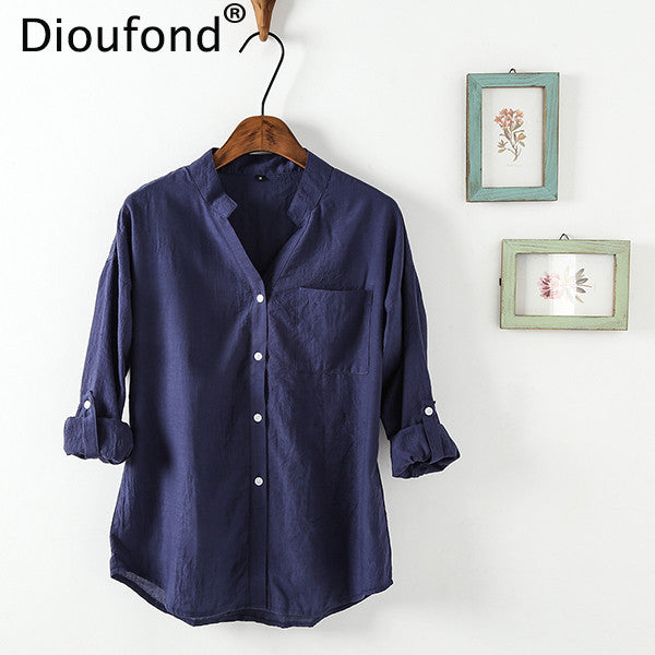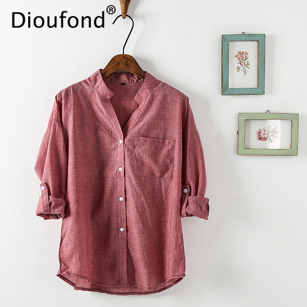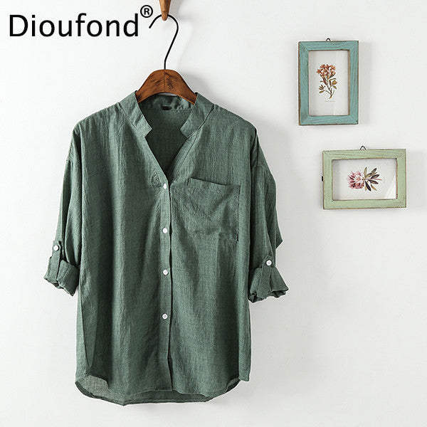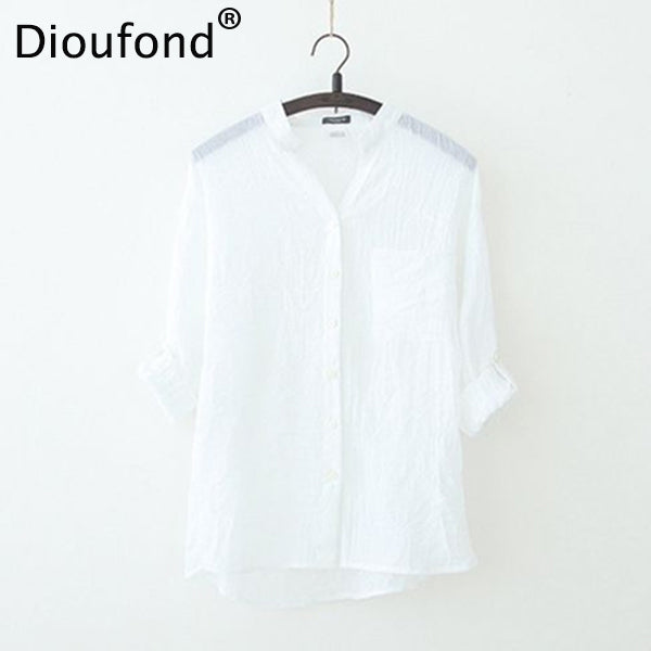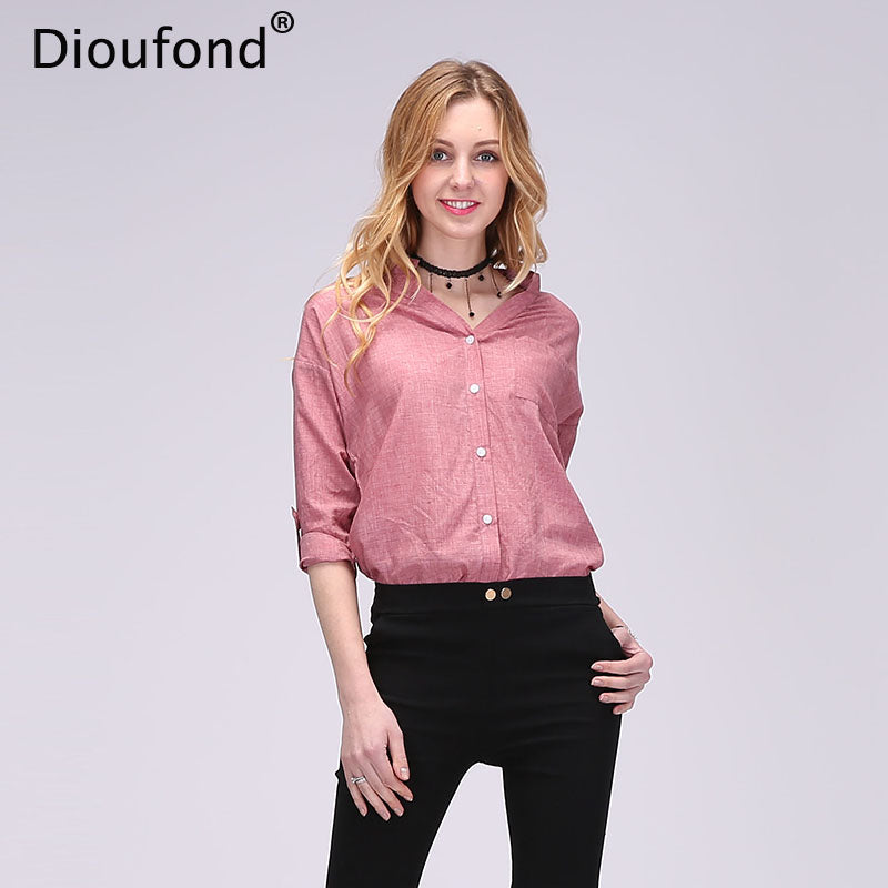 Dioufond Summer V-neck Cotton Thin Women Shirts Three Quarter Female Camisas Femininas Office Women Tops Blusas Femininas 2017