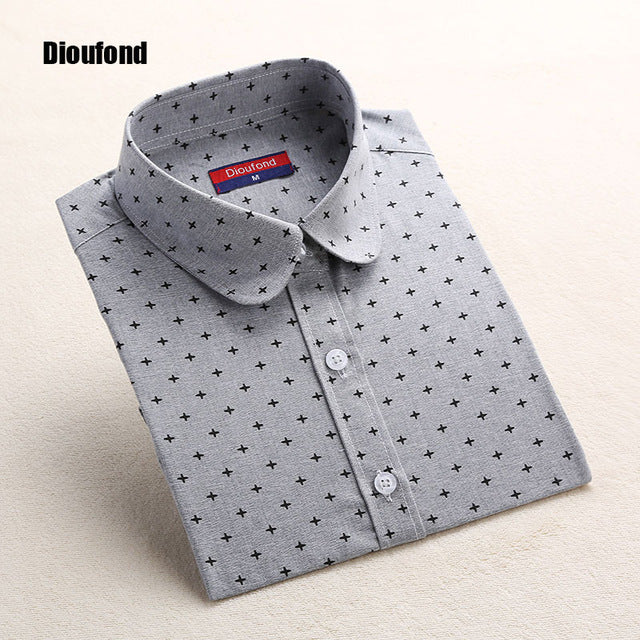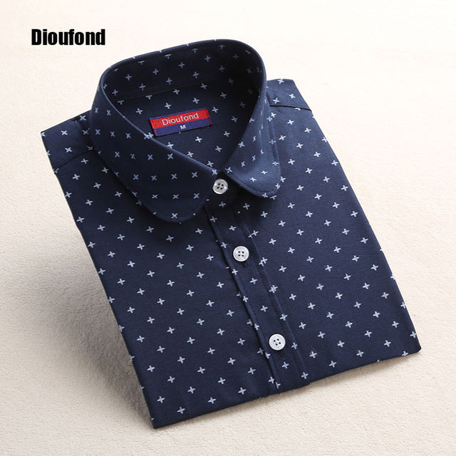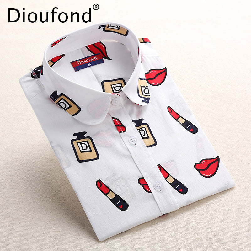 Dioufond White Navy Lips Print Women Blouses Long Sleeve Ladies Office Blouse Shirt Casual Button Down Blusa 2017 Spring
