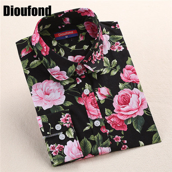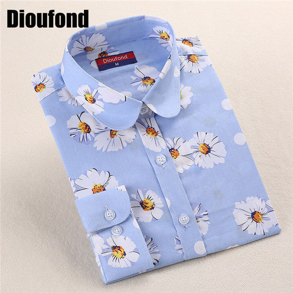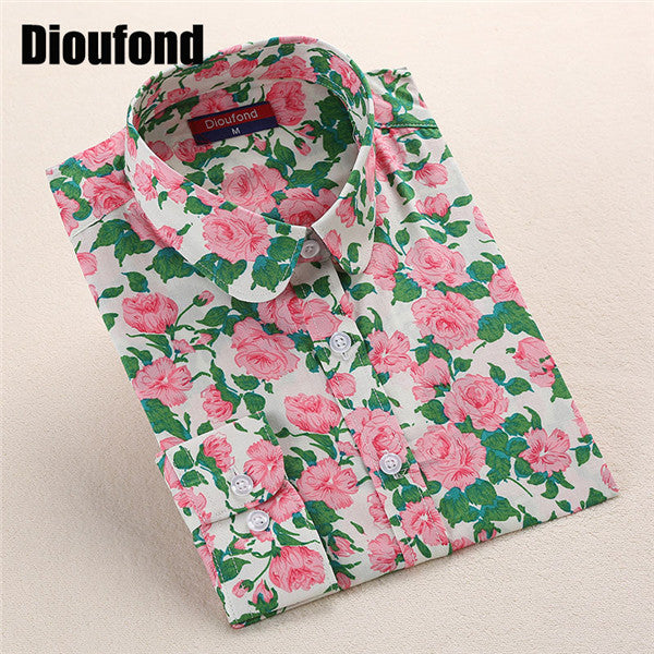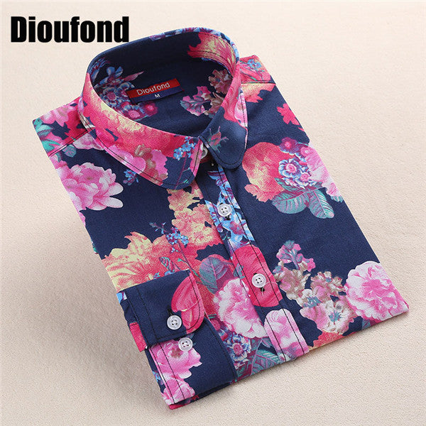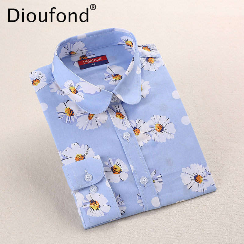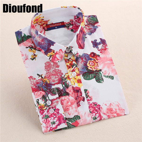 Dioufond White Red Floral Women Blouses 2017 Summer Long Sleeve Cotton Blouse Shirt Women Tops 5XL Plus Size Blusas Feminina