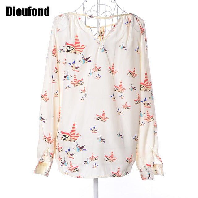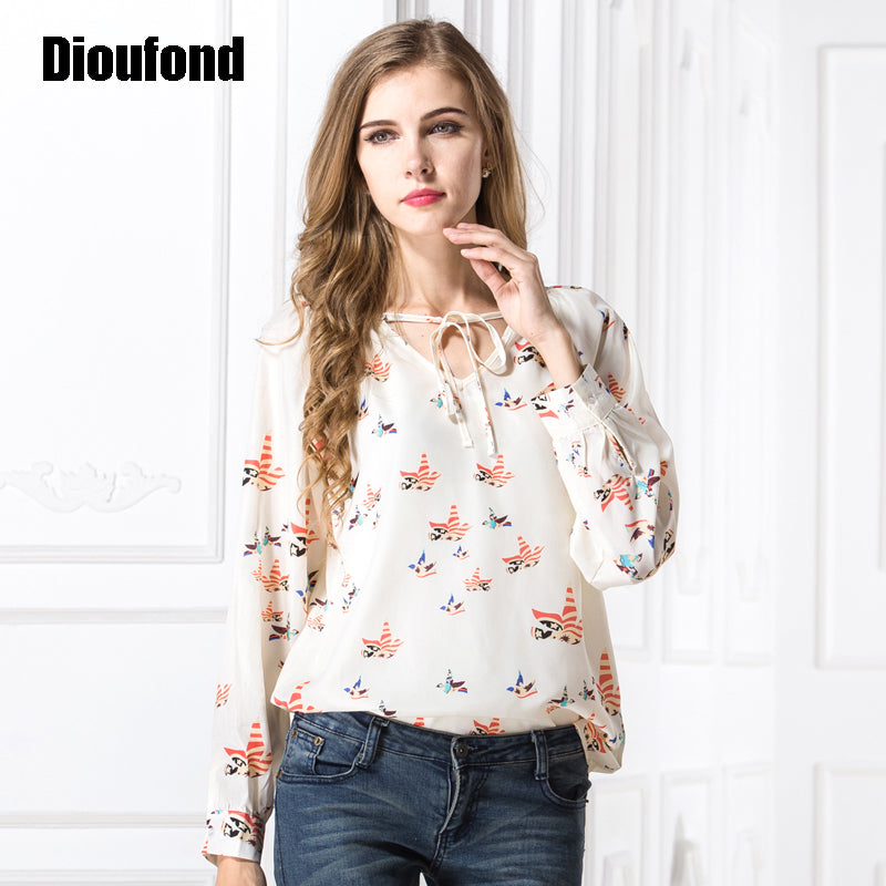 Dioufond Women Blouses Chiffon Long Sleeve Chemise Femme Ladies Tops Floral Print Shirt Women Blouse 2017 New Fashion Plus Size