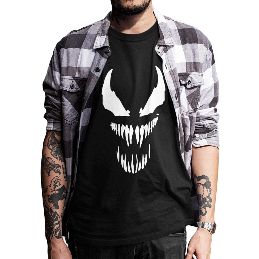EU Size Venom T Shirt Men Cool Comic Originality Black Cotton T-shirt Anime High Quality Movie Tops Tee Homme