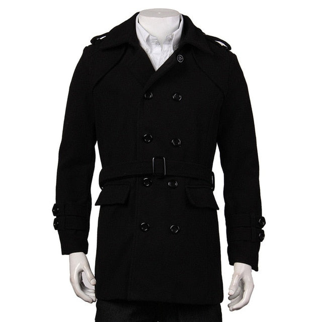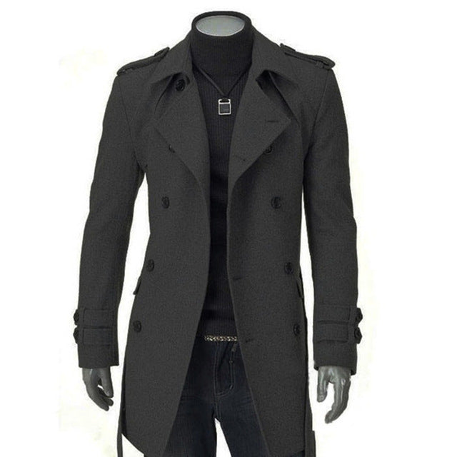 Fashion Winter Men Jackets Black Grey Faux Wool Trench Men Cardigan Business Clothes Slim Fit Belted Long Coat Outwear Hombre