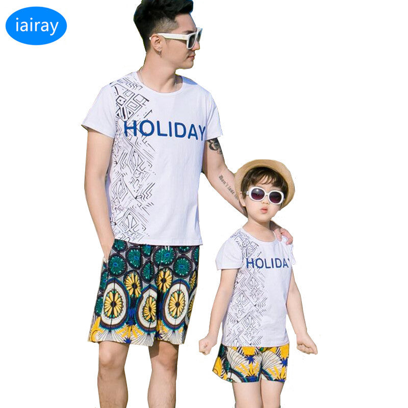 iairay summer 2018 family clothing father son matching clothes holiday casual white t shirt print t-shirt cotton men short pants