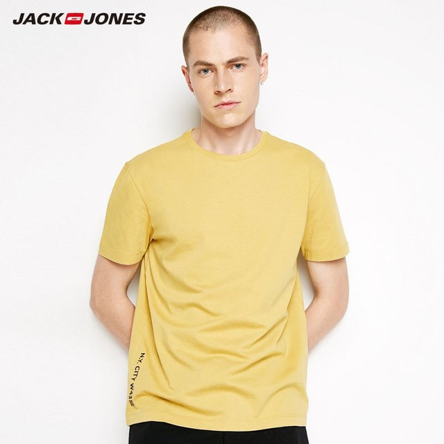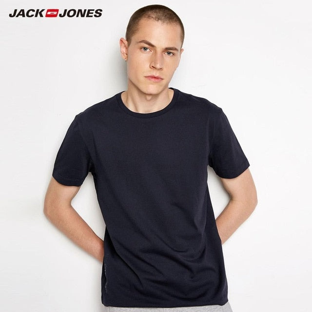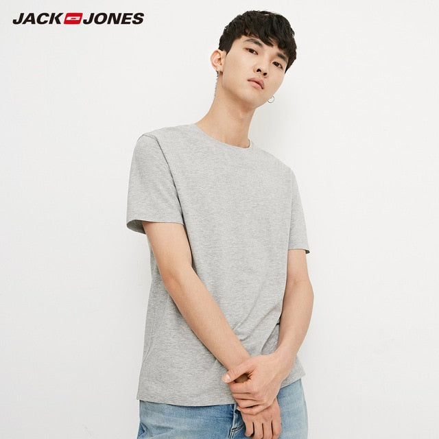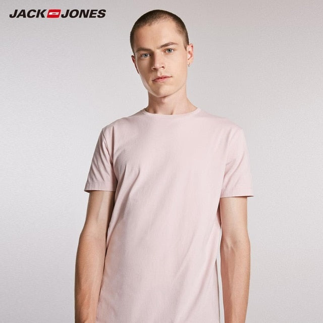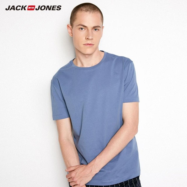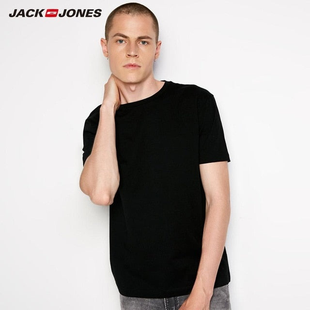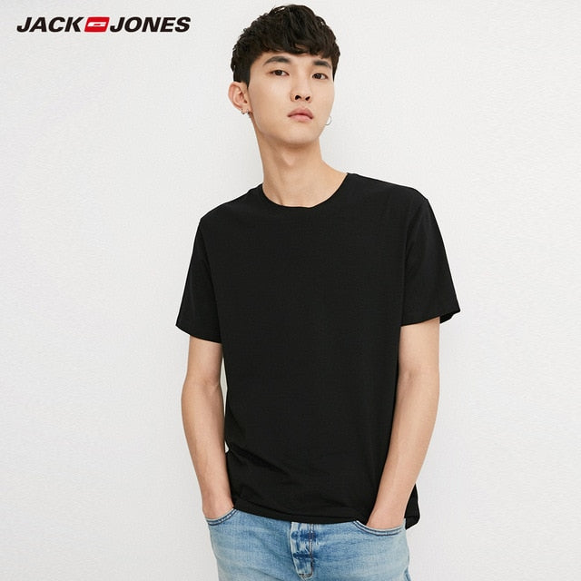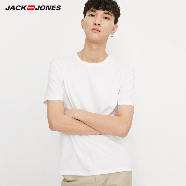 JackJones Men's Cotton Spandex Elastic Fabric Crew Neck T-Shirt Solid Color T shirt 2019 New Top Tshirt for Men |218201546