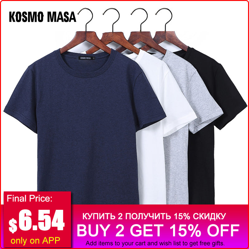 KOSMO MASA O-neck Black Men T-shirt Cotton Slim Summer T Shirt Male Short Sleeves Casual Tshirts Plus Size 5XL for Men MC0343