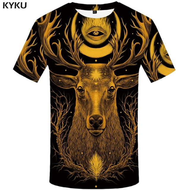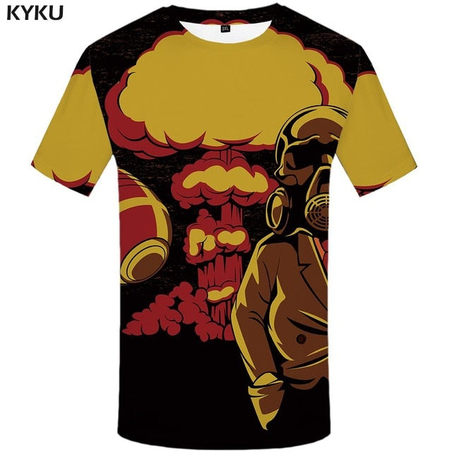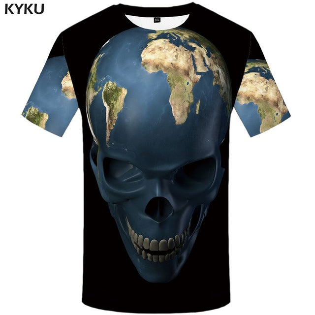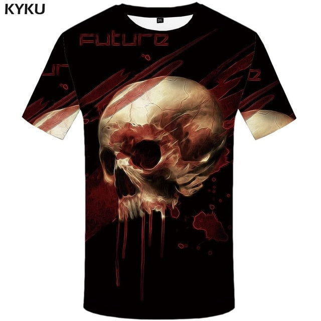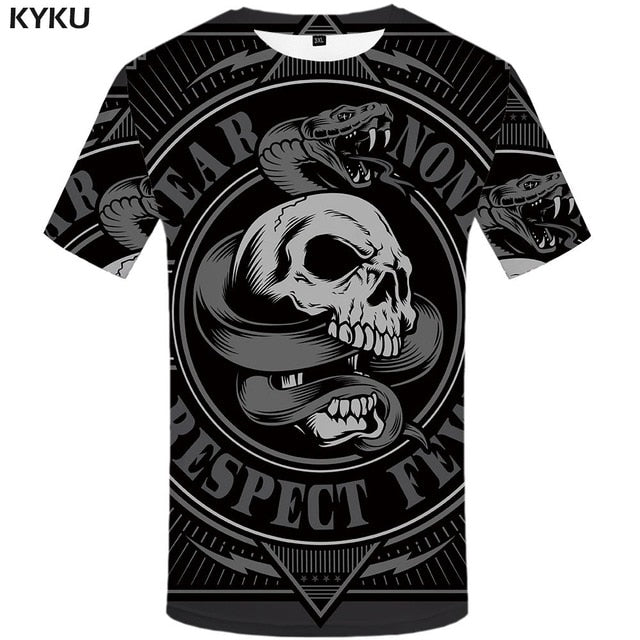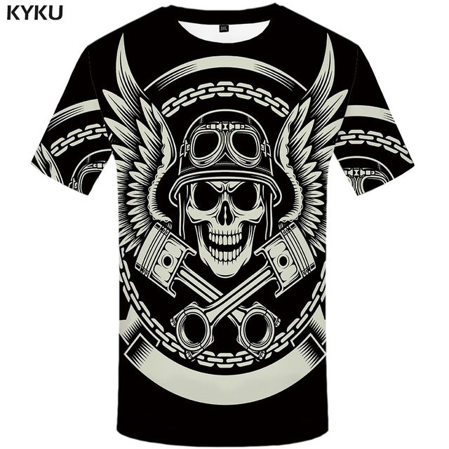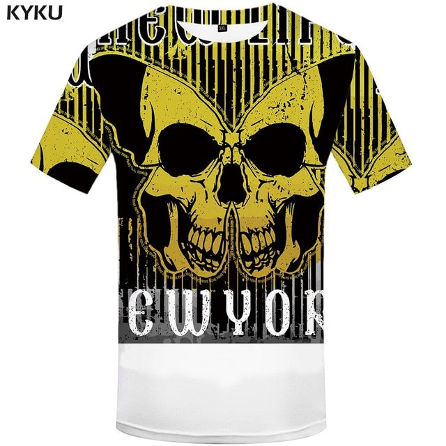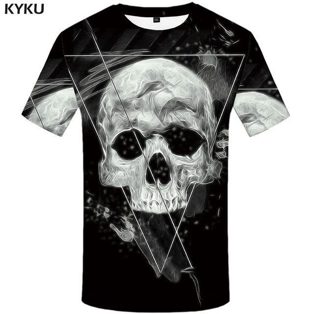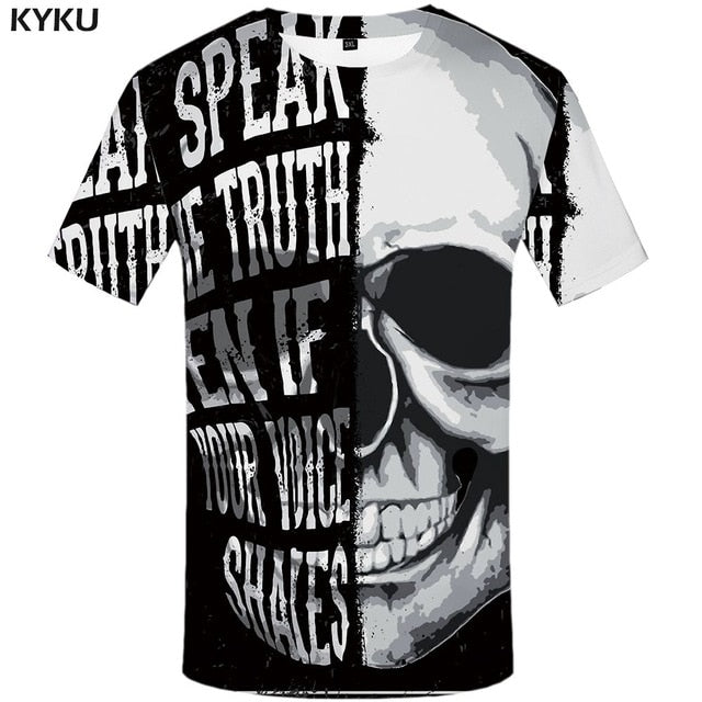 KYKU Skull Tshirt Men Black And White T-shirt Punk Rock Clothes Gothic 3d Print T Shirt Cool Hip Hop Mens Clothing Streetwear