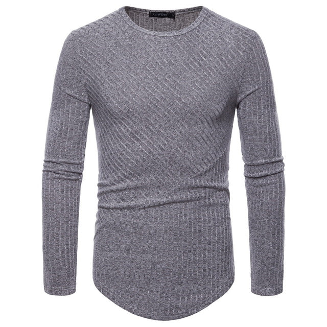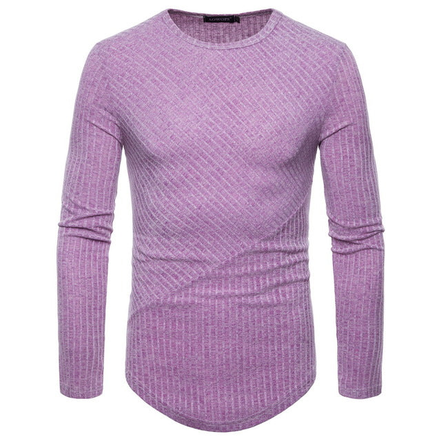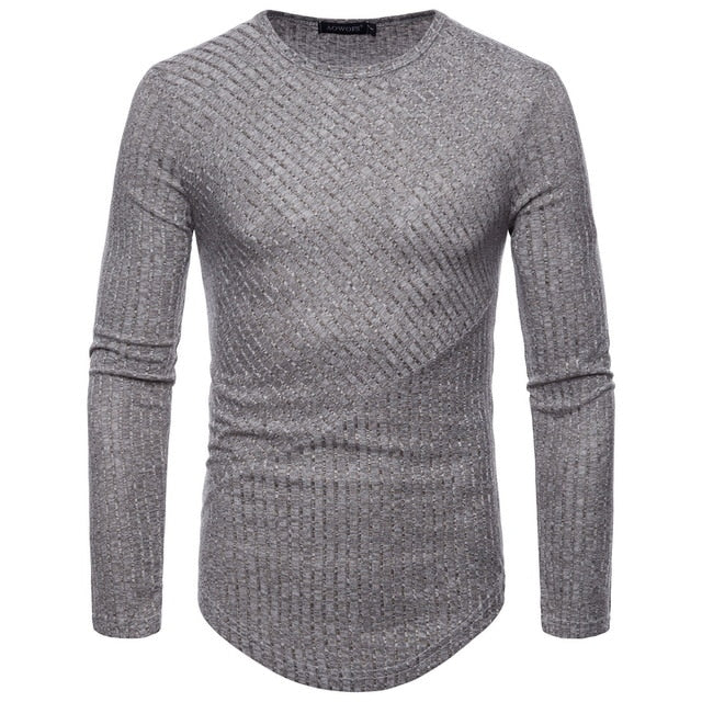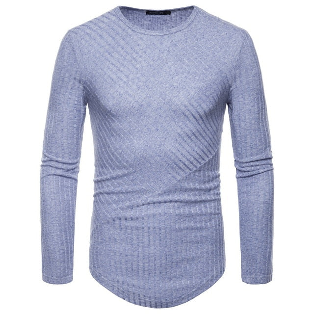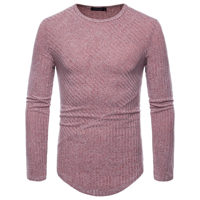 Men T Shirt Casual Autumn Long Sleeve Tshirt Solid Color Round Neck Knitted T Shirts