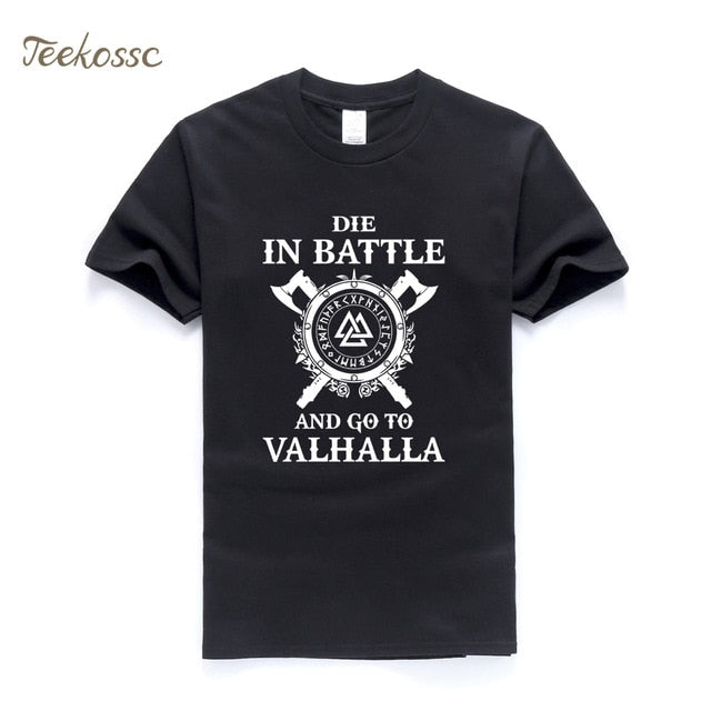 Odin Vikings T Shirt Men Die In Battle And Go To Valhalla Tshirt Mens Summer Print Hip Hop T-Shirt Black Tops Tee Plus Size XXXL