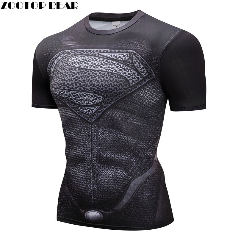 Superman Tshirts Men Compression Shirts Batman Tops The Flash T-shirts Fitness Crossfit Tees Bodybuilding camiseta rashguard