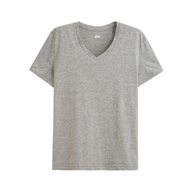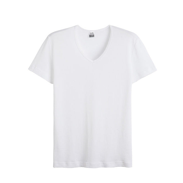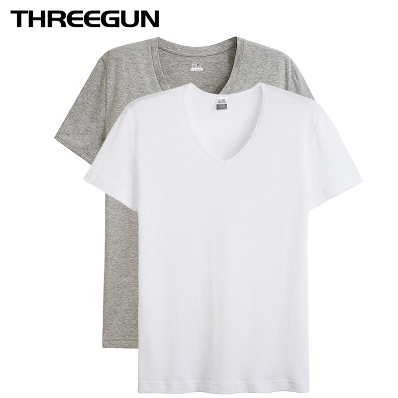THREEGUN Cotton Short Sleeve T-Shirts V-Neck High Elastic Soft Lycra Undershirts For Men Slim Fitted Top Tees With 3 Solid Color